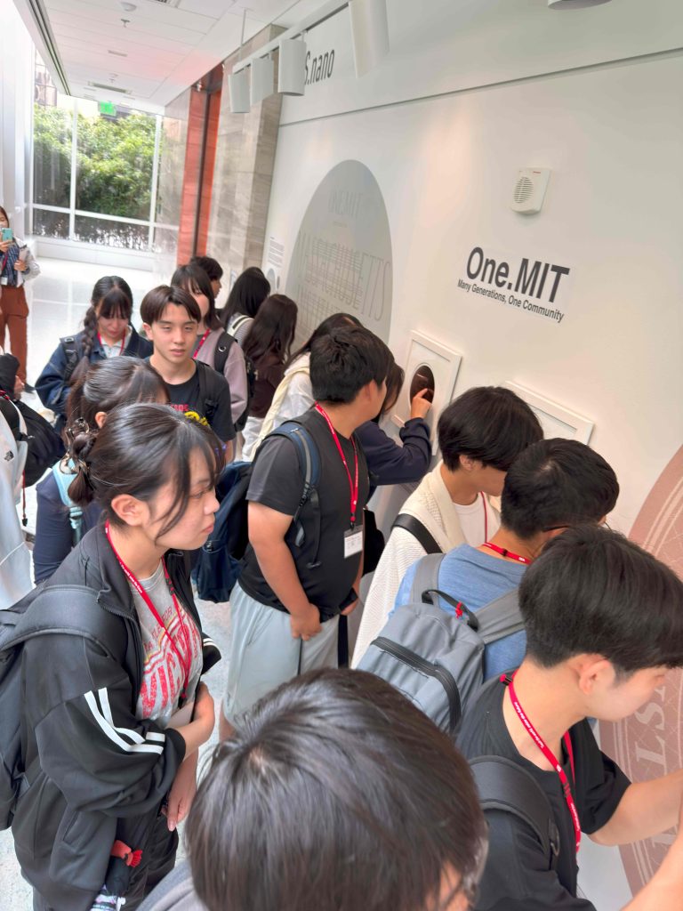 ・MITに在籍していた学生やスタッフ全員の名前の刻印があるシリコンウェハーの実物を見て感動しました。One.MITは一見普通のMITのロゴ写真に見えましたが、写真を撮って拡大してみると本当に様々な人の名前が載っていました。ナノスケール(1mmの100万分の1)の小ささやその研究に驚かされました。