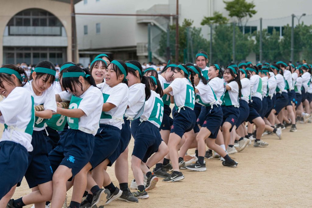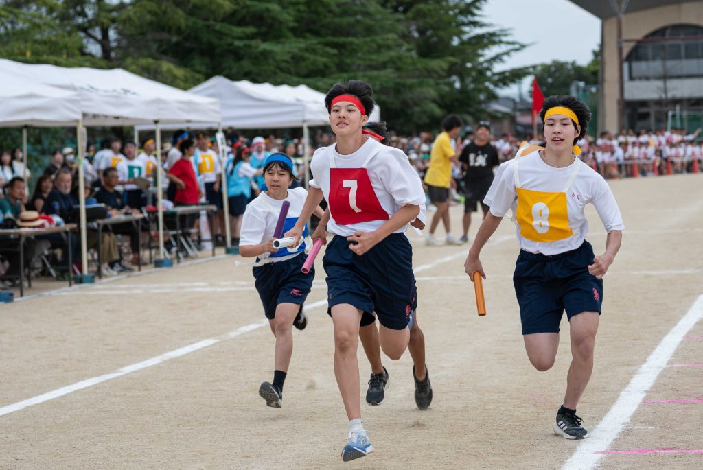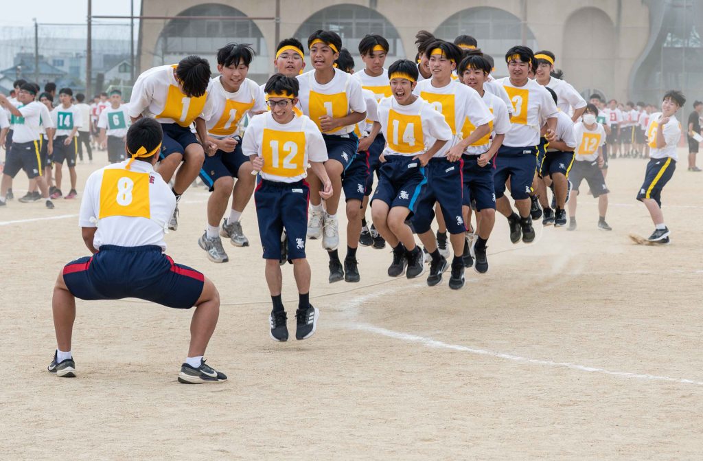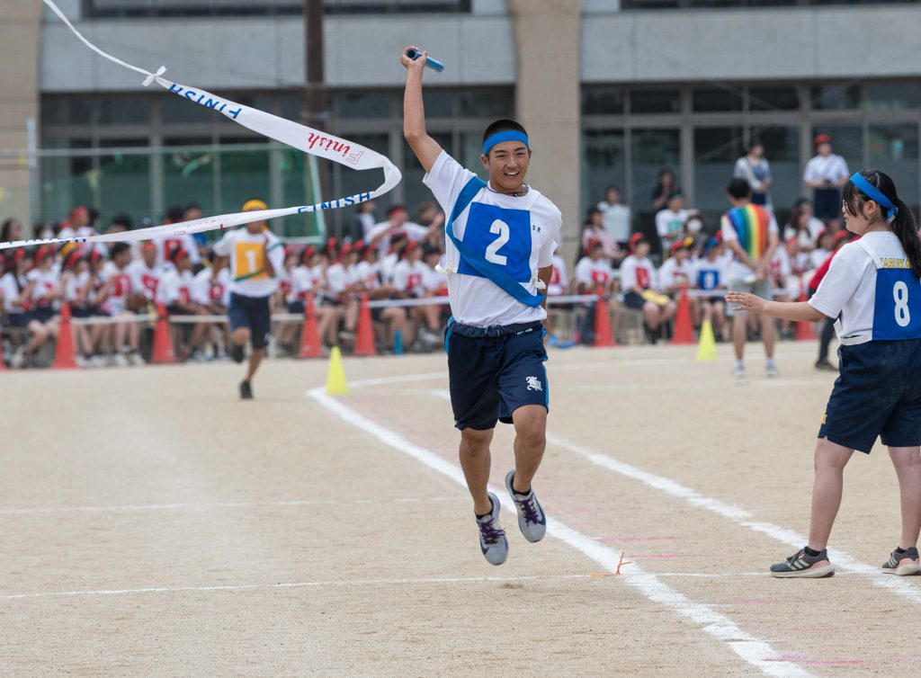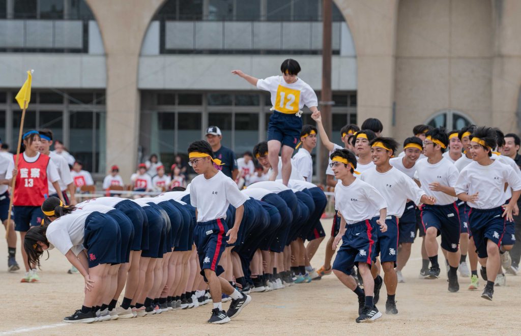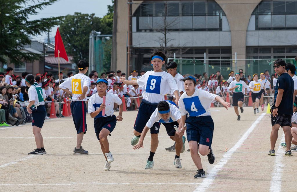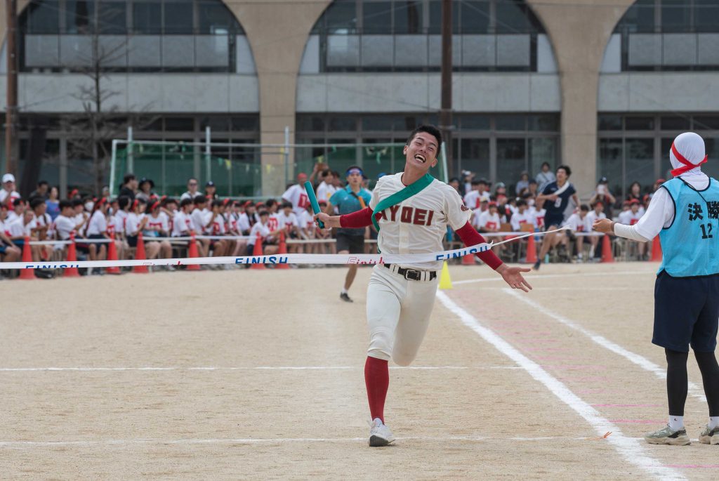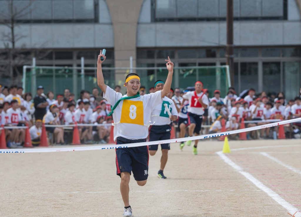 2、3年生女子による「ダンス」を皮切りに・各学年バラエティに富んだ競技種目が実施されました。熱気あふれる学年別クラス対抗リレーで盛り上がりは最高潮を迎え、締めくくりは伝統の2、3学年男子による「エッサッサ」でした。女子のダンスとともに気持ちの込もった演舞に1年生、保護者、教職員、来賓の方々から一際大きな拍手が寄せられました。