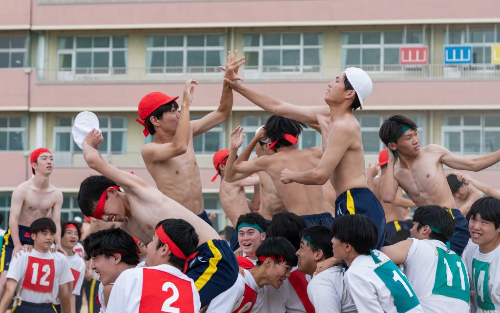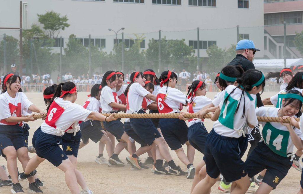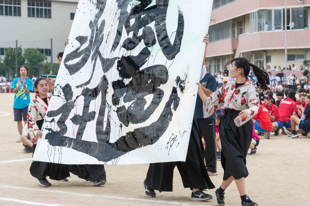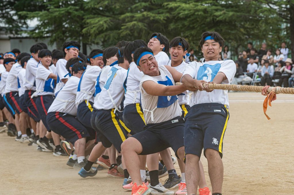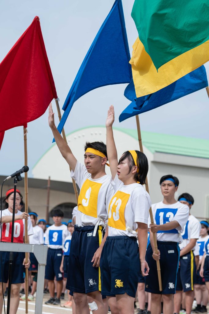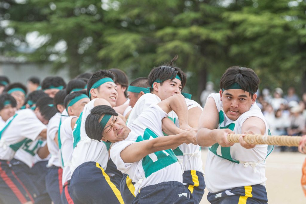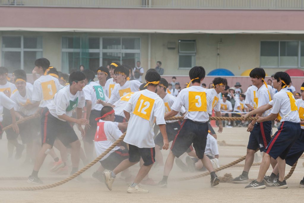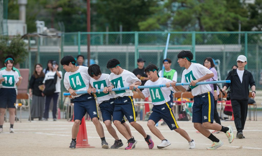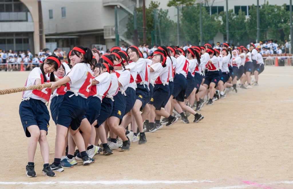 2、3年生女子による「ダンス」を皮切りに・各学年バラエティに富んだ競技種目が実施されました。熱気あふれる学年別クラス対抗リレーで盛り上がりは最高潮を迎え、締めくくりは伝統の2、3学年男子による「エッサッサ」でした。女子のダンスとともに気持ちの込もった演舞に1年生、保護者、教職員、来賓の方々から一際大きな拍手が寄せられました。