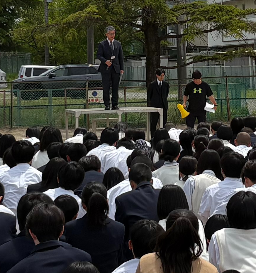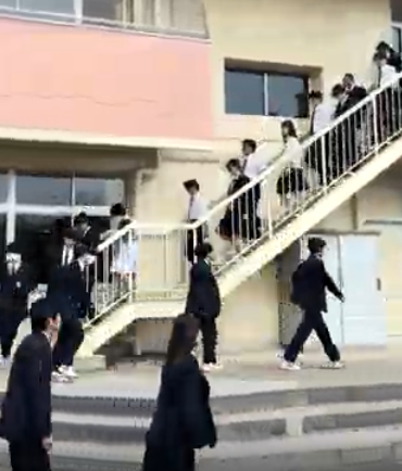 中高あわせて2000名以上の生徒がいますが、新入生も含め、適度な緊張感をもってスムーズに避難を完了することができました。