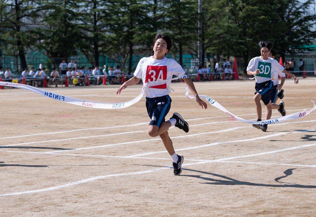 開会式に引き続き、全学年選抜選手による「50m 走」を皮切りに各学年バラエティに富んだ競技種目が繰り広げられました。午後の目玉は中学伝統の「共栄節」でした。心を一つにした全学年全生徒による演舞に一際大きな拍手が寄せられました。熱戦のフィナーレは、全グループ選抜選手による「グループ対抗リレー」が飾りました。その勢いのまま、赤組が優勝を果たしました。