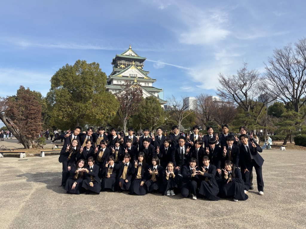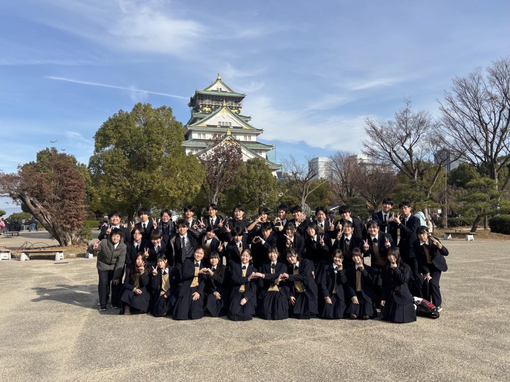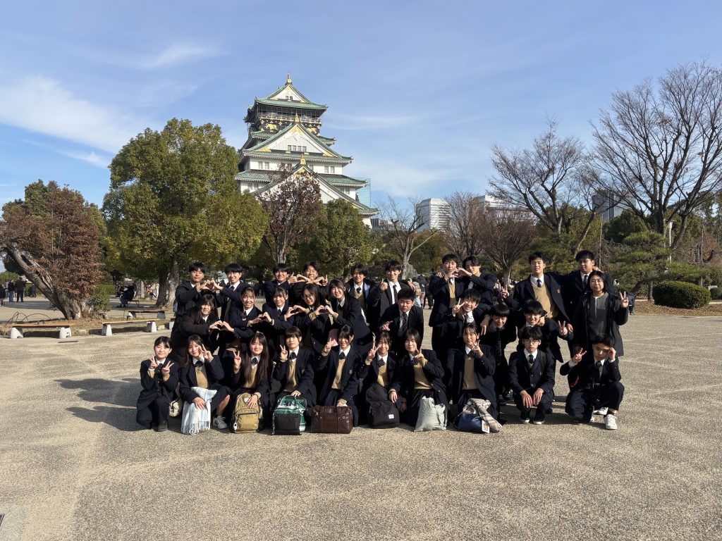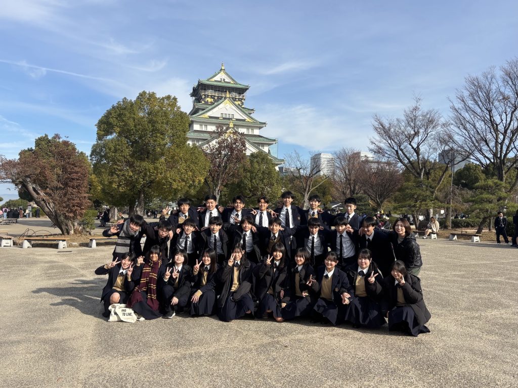 2日目はまず大阪城を訪れました。 クラス写真撮影後、生徒たちは大阪城からの眺めを楽しんだり、大阪城の歴史にまつわる展示物を見学したりと、短時間ながらも有意義な時間を過ごしました。