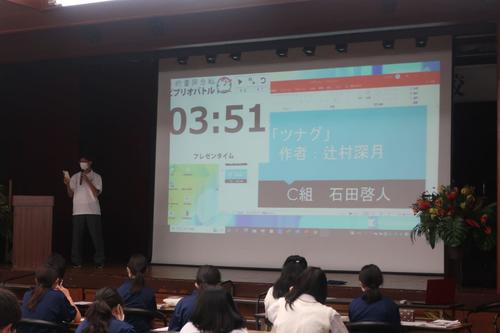 また、ビブリオバトルでは各クラスの代表者で決勝戦を行いました。どれもハイレベルな内容で接戦を繰り広げ、会場は盛り上がりを見せました。